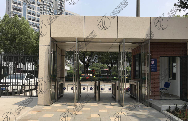 3、乘客自動回程通道由底板、中央隔離護欄、通道門柱、縱向自動復(fù)位門和橫向自動復(fù)位門組成。復(fù)位門通過電子阻尼機構(gòu)與立柱相連,遇到行人時自動開啟,行人離開后緩慢關(guān)閉。臥式自動復(fù)位閘門設(shè)有自動上鎖裝置,通行時輕輕一推即可開鎖,關(guān)門后自動上鎖,使倒車的乘客無法從這里進入。這些機構(gòu)的結(jié)合,讓無票旅客也能順利返回廣場。